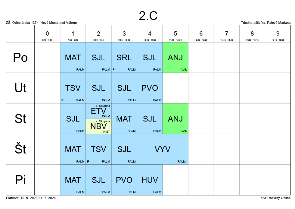 Rozvrh hodín